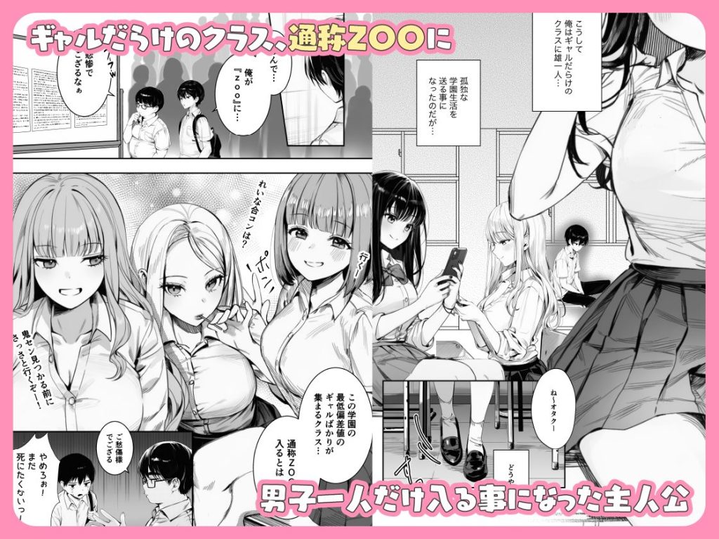 偏差値最下層のギャルクラスに放り込まれたオタクの主人公が、肉食ギャル軍団に目を付けられ、カラオケやラブホで「おもちゃ」のようにハメ倒される、欲望全振りの学園無双物語です。